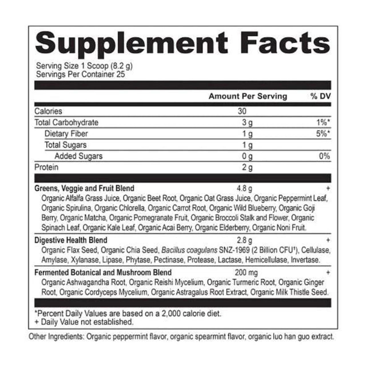 Ancient Nutrition’s Organic SuperGreens is designed to give you the benefits of juicing every day, without the hassle. This mixable powder is full of nutrients sourced directly from premium superfoods like spirulina for healthy detoxification. On top of the greens and botanicals in this blend, youโll get clinically studied probiotic Bacillus coagulans to help support a healthy gut. Increase your greens intake, get a healthier gut and support your digestive and immune system with Ancient Nutrition’s New Organic SuperGreens!