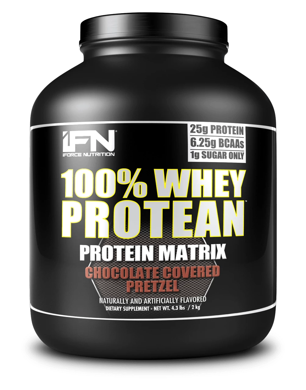 iForce Nutrition 100% Whey Protean combines taste and quality. You really get the best of both worlds! Each serving contains 25 grams of fast-acting whey protein designed to increase lean muscle gains, accelerate recovery, enhance fat loss, and improve overall athletic performance. The taste is amazing and youโd never guess youโre drinking something with quality ingredients and nutritional value. You have 7 delicious flavors to choose from, including Chocolate Covered Pretzel, Mint Chip Ice Cream, and Red Velvet Cake. This product taste just like milkshake dessert, but each scoop only has 140 calories and 6 grams of carbs!