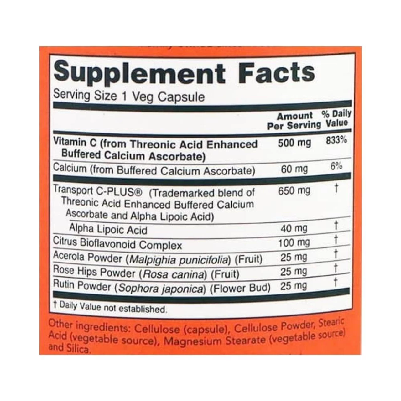 Now Foods AlphaSorb-C 500mg 180 Capsules๏ปฟ Ingredients
