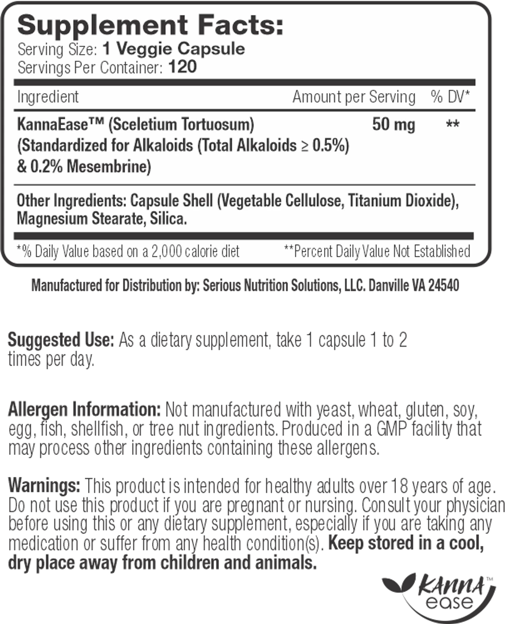 Are you looking to relieve stress, increase calmness and overall just improve your sense of well being? Then look no further than Serious Nutrition Solutions KannaEase. KannaEase was created to support all those benefits and just put you into a positive mood to help you get through the day more easily.