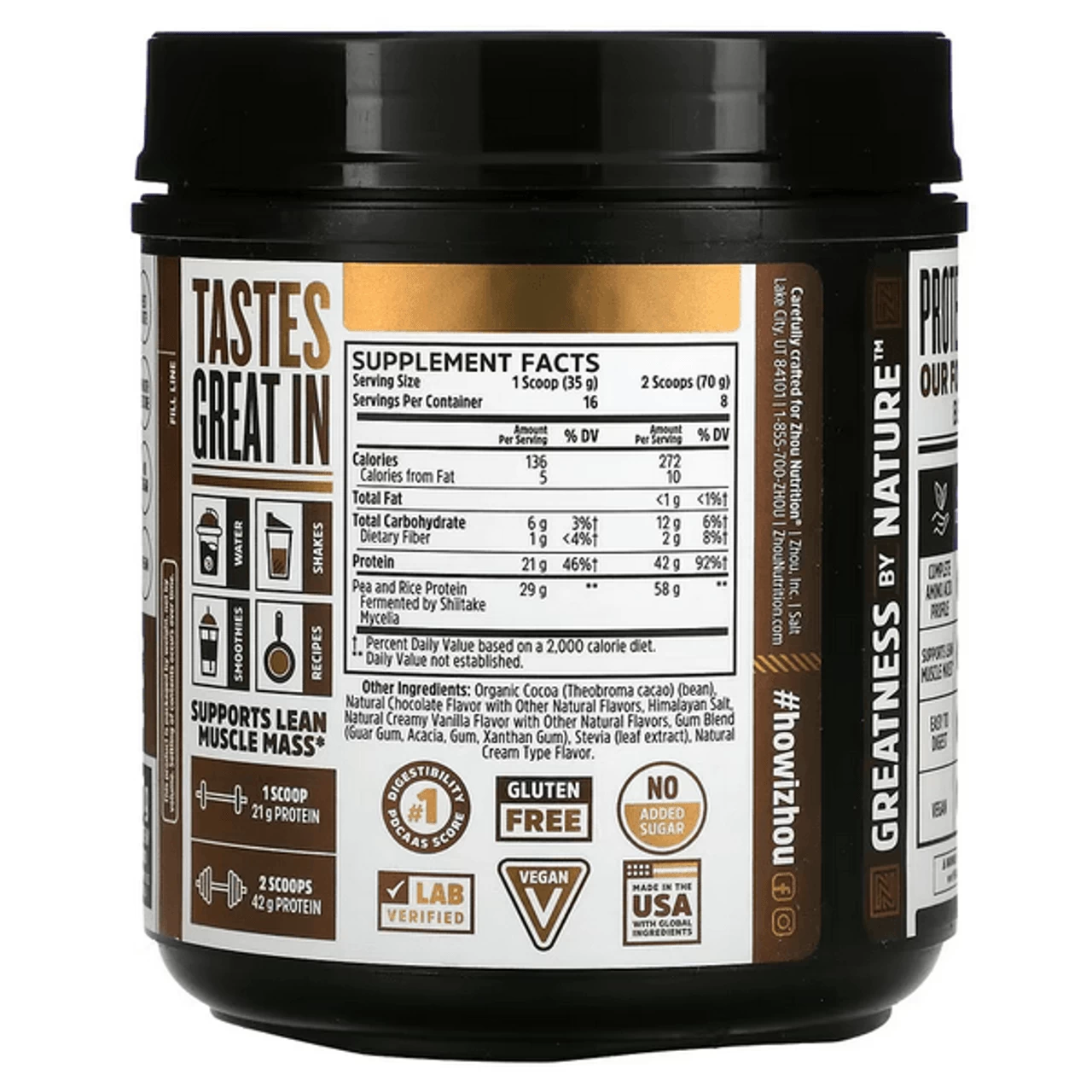 Need to meet your protein requirements, but don’t want whey, casein, egg or any of those other blends? And how do you do that with something that actually tastes good? Welcome Zhou Plant Complete Vegan Protein powder! This is the ultimate great tasting protein powder for vegans and vegetarians. Zhou packed this product with 21 grams of plant based protein. They didn’t stop there though. They also added 9 essential amino acids which provide you with a full amino acid profile without the need for cows milk, whey, eggs or any animal sources.